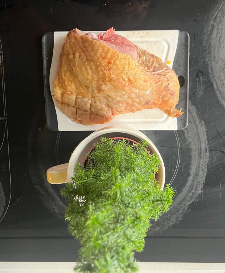 Putenoberkeule, bio, mit Salz gepökelt und geräuchert. ca 600g
