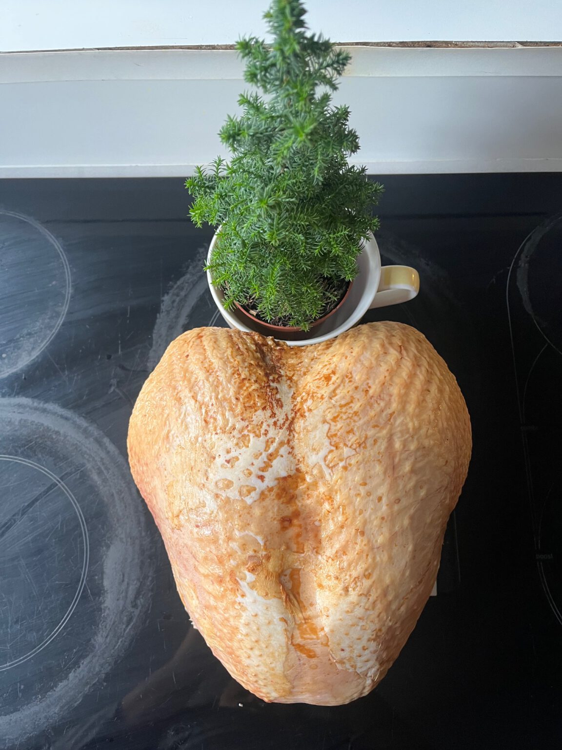 Ein halber Bio-Hahn aus unserem Zweinutzungsbestand.